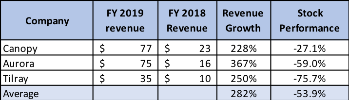 Table 2: Performance of Largest Public Cannabis Companies